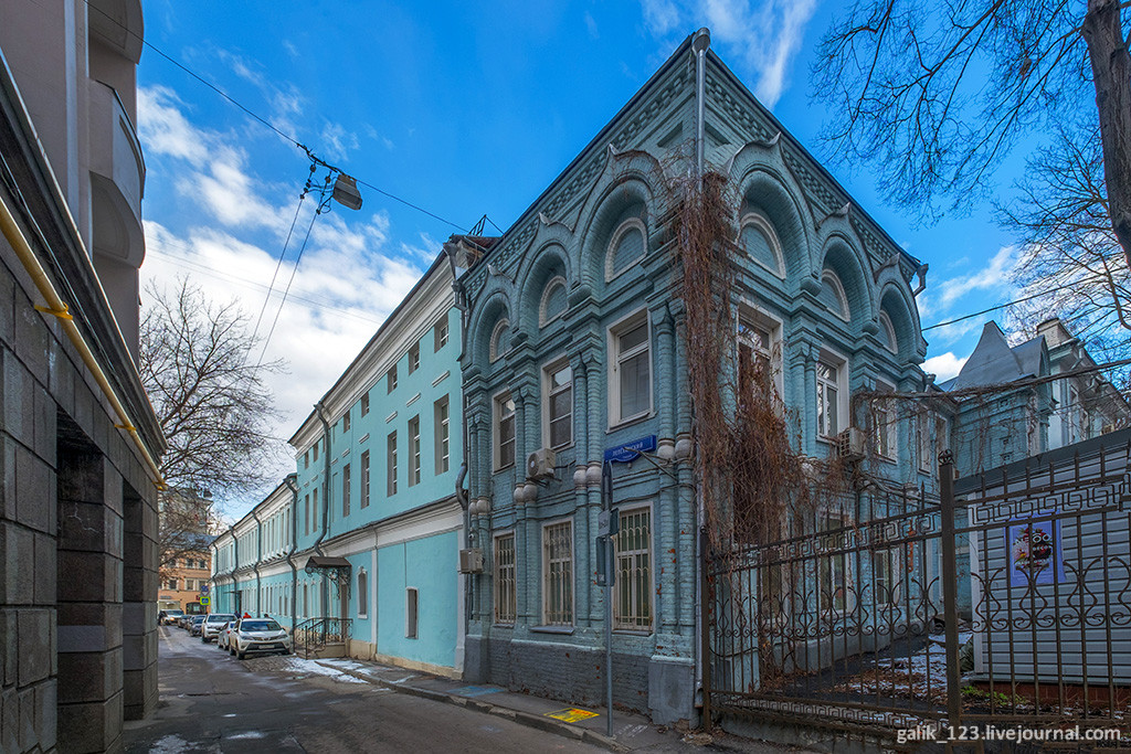 2. Самое старое здание Лепёхинского тупика, дом № 22а, строение 1 — усадебный дом купцов Андроновых, построенный в конце XVIII — начале XIX веков, т.е. еще до пожара 1812 года. Свой нынешний облик дом приобрел во второй половине XIX века, когда его фасад был переделан в соответствии с эклектичной архитектурной модой. Его первый этаж был отделан рустом, второй этаж украшен пилястрами ионического ордера.
