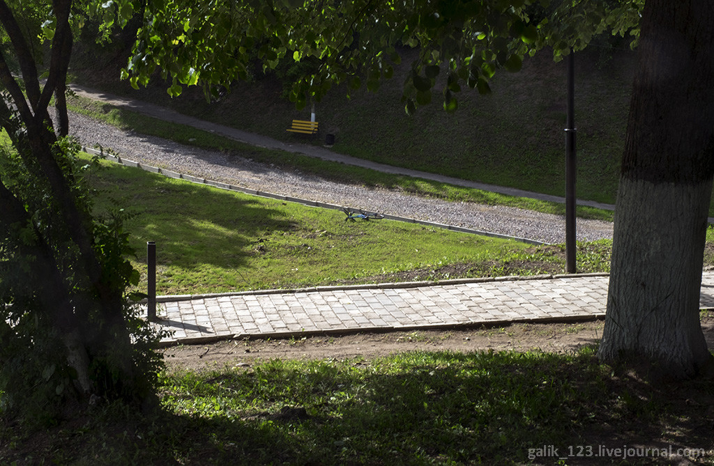 5. Улица ведёт к Протве. а мощёная плиткой дорожка вдоль вала.