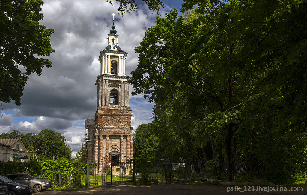 25. Небольшая низкая трапезная связывает четверик с трехъярусной колокольней. Церковь Богоявления Господня является памятником истории и культуры регионального значения.