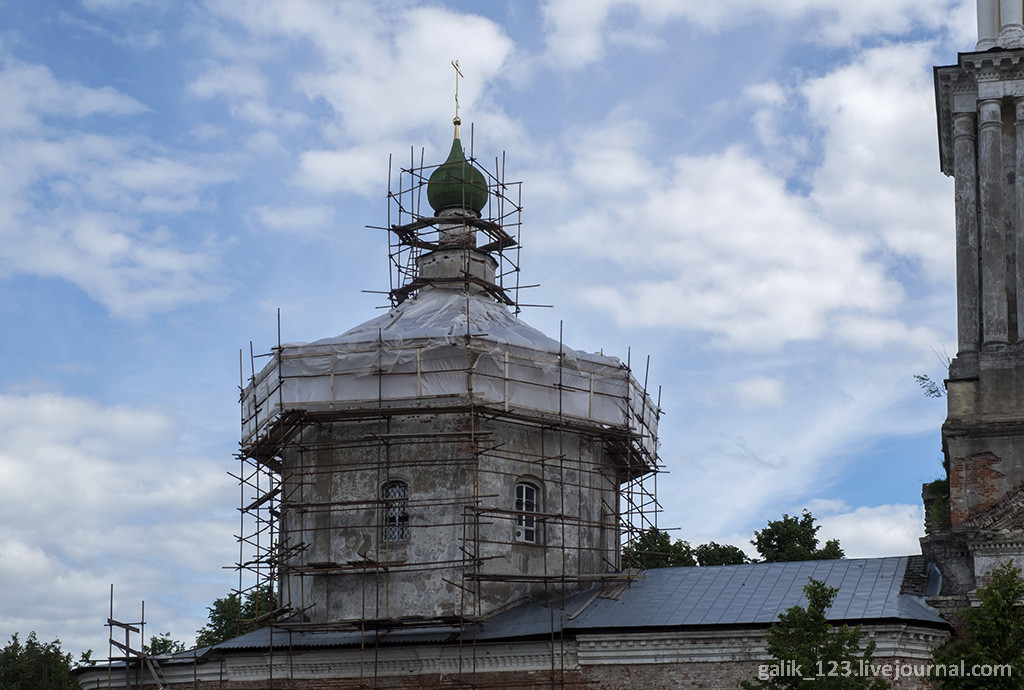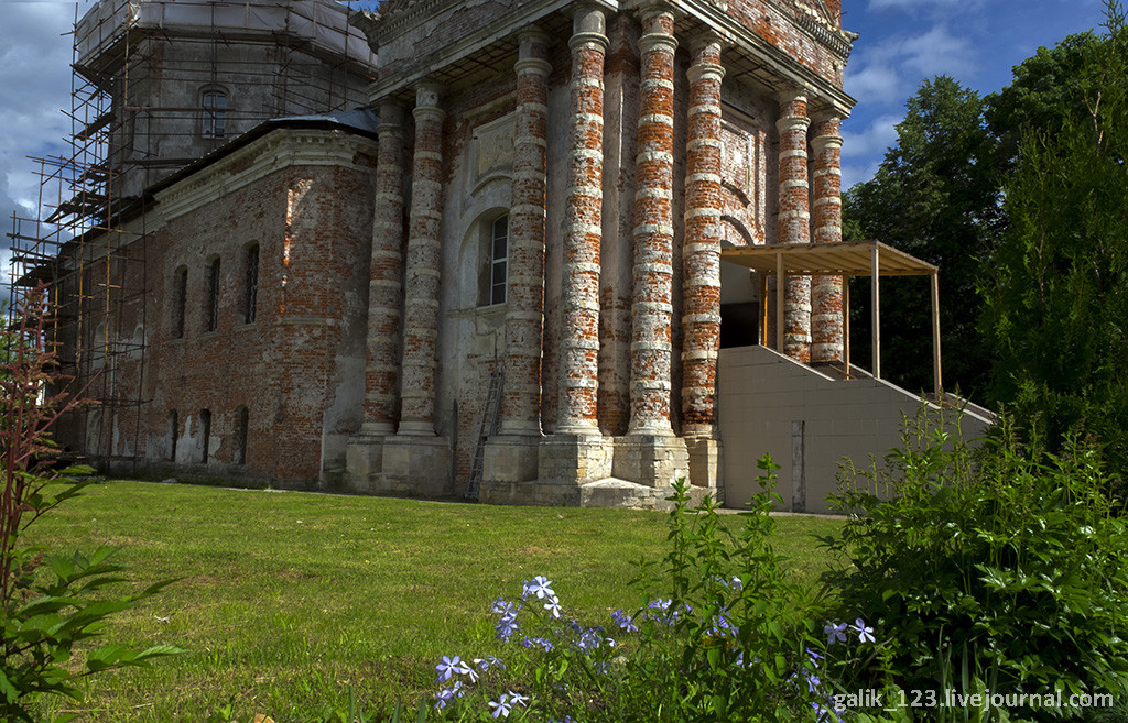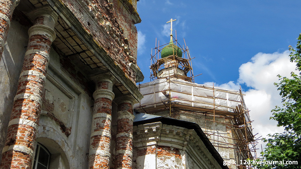 9. В настоящее время собор восстанавливается. Говорят. что колокольня в таком виде — с покрашенным верхом и облупленным низом, стоит уже десяток лет. Официально, собор реставрируется с 1999 года…