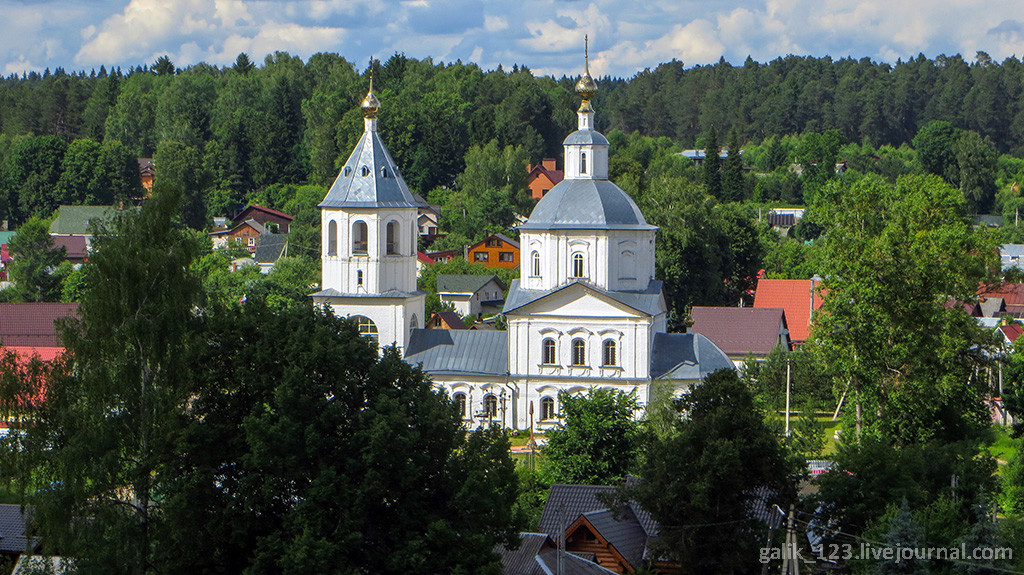 24. Церковь Богоявления Господня — образец церковного зодчества последней четверти XVIII века. Архитектурные и декоративные формы храма — спаренные пилястры на углах, фронтоны, абрис кровли, подчёркивают вертикали здания. Сомкнутый свод храма несет массивный световой восьмигранник барабана с миниатюрным глухим постаментом и фигурной главкой. Два нижних яруса колокольни несут прорезанный арками восьмерик звонницы, увенчанный каркасным шатром.