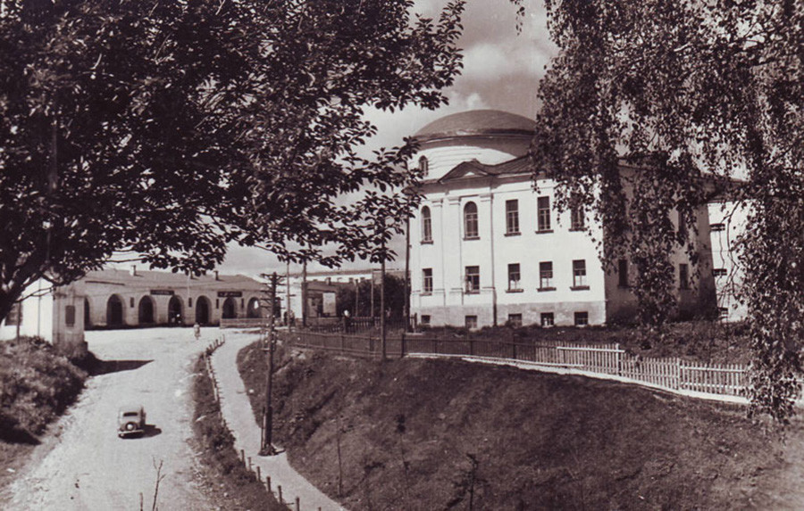 30. Во время Великой Отечественной войны торговые ряды были сильно разрушены, и восстанавливать их стали только в 90-е. При этом четверть комплекса отстроена заново, а четверть — вообще разобрана.