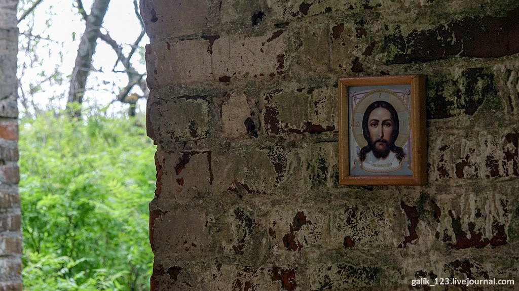 21. Но и сейчас в эту почти разрушенную церковь приходят люди и ставят иконки.