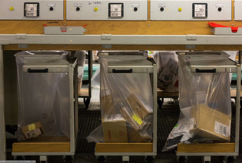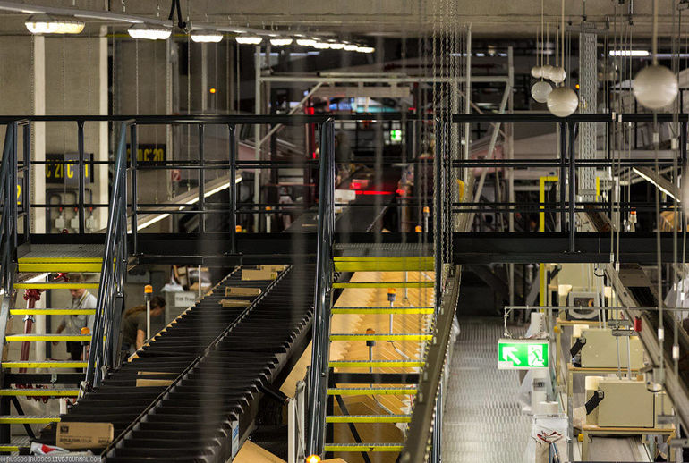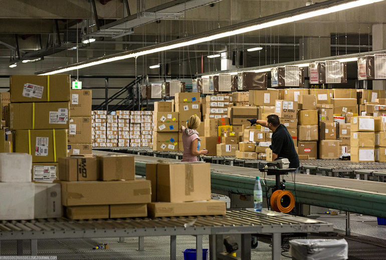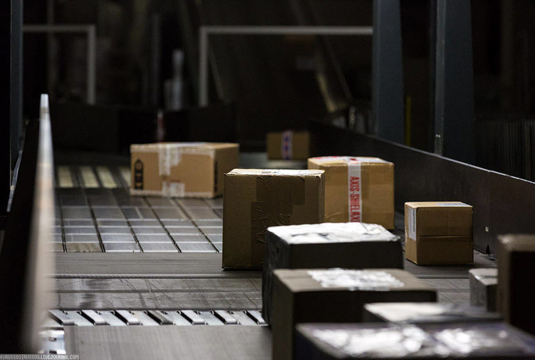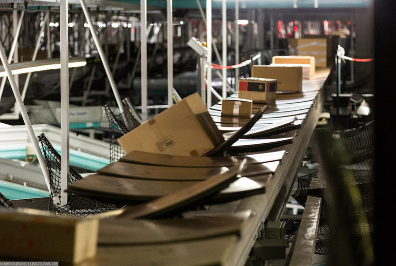 19. Давайте проследим путь коробки. После распознавания кода, проверки упаковки (грамотно упаковать — то еще искусство) ваше отправление наконец-то попадает на сортировку. В нужный момент площадка наклоняется и коробка уезжает по адресу.