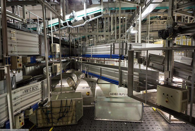 3. Центр обрабатывает 110 000 единиц грузов и документов в час. Сейчас ведутся работы, которые позволят увеличить пропускную способность до 190 тысяч единиц. Когда вы что либо заказываете по интернету с доставкой UPS, то в Россию ваша покупка попадает через этот хаб в Кельне. Или для Дальнего Востока — через Сеул и Владивосток.