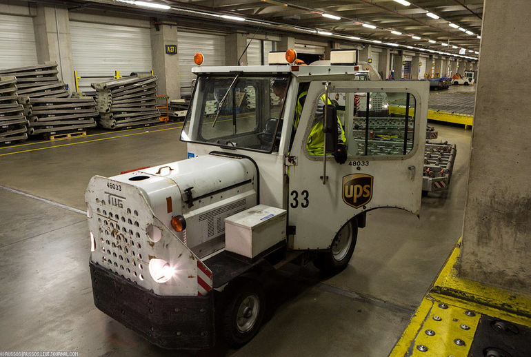 14. После авиационной транспортировки грузы надо доставить клиентам. В этом участвуют более 102 тысяч автомобилей в более чем 220 странах. Помимо самолетов, поездов, машин, мотоциклов и велосипедов так же используются рикши (Бангкок), гондолы (Венеция) и мулы (Гранд-Каньон). Причем в США, в отличии от Европы, активно используется железнодорожная сеть. В нашей стране только авиа- и автотранспорт. Как сказали представители UPS, мы были бы рады использовать железные дороги, в перспективе это могло бы упростить и удешевить доставку экспресс-отправлений, особенно между теми населенными пунктами, расстояние между которыми преодолевается за ночь, но в силу различных обстоятельств, пока это невозможно. К сожалению, РЖД непробиваемая бюрократическая структура.