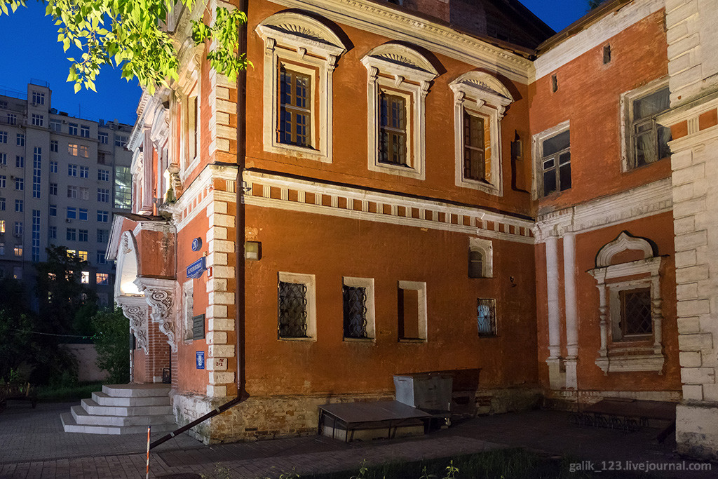 7. Палаты думного дьяка Аверкия Кириллова выстроены в начале XVIII века в стиле барокко. Два боковых фасада сохранили стиль допетровской эпохи.
