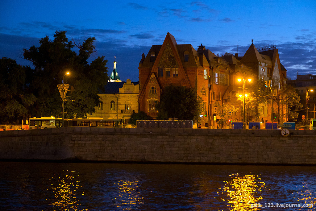 17. Так выглядит с Барсеневской набережной доходный дом Перцевой на Пречистенской набережной. Он построен в 1905-1907 годах архитекторами Н.К. Жуковым и Б.Н. Шнаубертом по эскизам художника С.В. Малютина, автора русской матрешки.