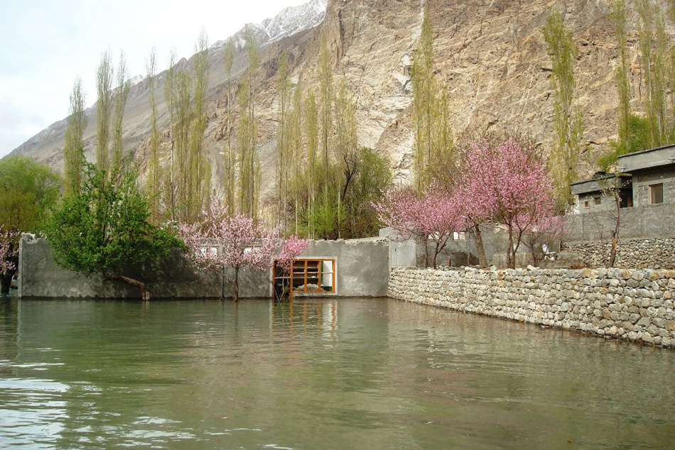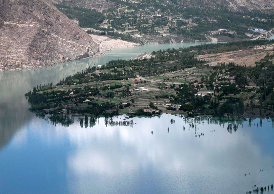 25. Вид от домиков вниз. Озеро еще только набирается, виден незатопленный участок шоссе Фото Zulfiqar Ali Khan.