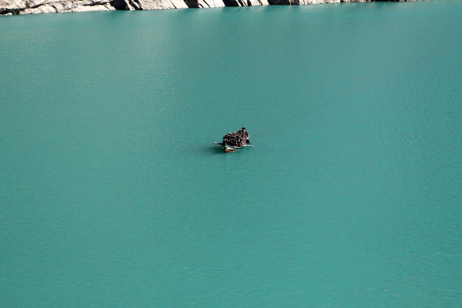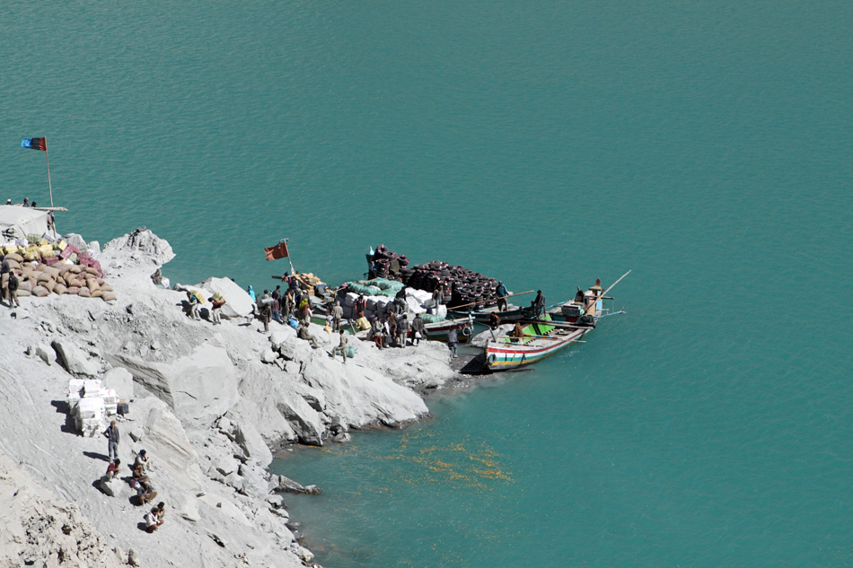 Однако все не так просто. Когда грузовик с товаром приезжает со стороны Китая (где нет обвала), товары из машин грузят на лодки и везут 16 км по воде. Причем люди, работающие на лодках, самые настоящие камикадзе. Груза надо перевезти как можно больше, и лодки нагружают под завязку.