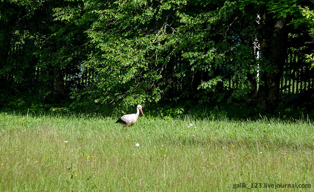 В прошлом году новоспасский аист проводил нас, и мы загадали, что ещё вернёмся сюда, а этим летом он встречал нас уже у ограды усадьбы.