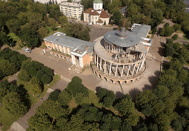 Здание Речного вокзала, памятник архитектуры регионального значения, после обрушения ротонды. Пресс-служба МЧС по Тверской области / ТАСС