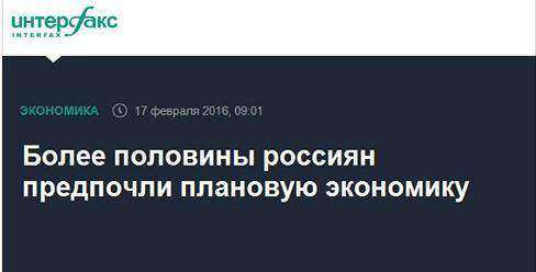 Вчера выяснилось, что больше половины россиян (52%), по данным «Левада-центра», предпочитают плановую экономику любой другой. Т. е. хотели бы иметь такую же экономическую систему как в СССР — основанную на государственном планировании и распределении.