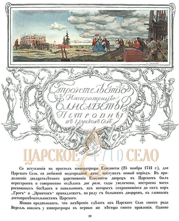 Были напечатаны такие шедевры полиграфического искусства, как "Царское Село в царствование императрицы Елизаветы Петровны" А.Н. Бенуа (1910) с иллюстрациями "мирискуссников".