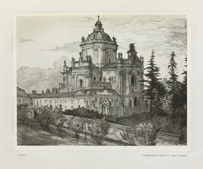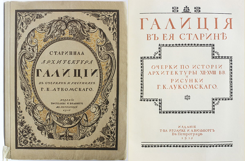 Старинная Архитектура Галиции в очерках и рисунках Г.К. Лукомского. Петроград: издание товарищества Р.Голикэ и А.Вильборг, 1915г. 127 с. Издание иллюстрировано: 60 иллюстраций на отдельных листах и вклейках. Иллюстрированный авантитул. Мягкий переплет, тиснение золотом.
